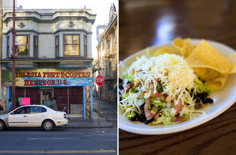 Even though we haven’t been spending a lot of time in the kitchen yet, we have still been eating good food. In New York we tried the Raw food restaurant Rockin’ Raw in Williamsburg, the macrobiotic restaurant Souen in Soho, and the amazing juice bar Liquiteria in East village. Here in San Francisco we have been trying tacos from a couple of the taquerias in the Mission district and yesterday we had portabella burgers at a local burger joint.
