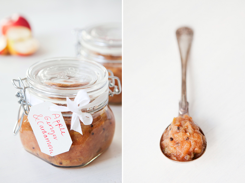 As you can imagine we are boosted with Asian inspiration. We have for example got a major crush on lemongrass, look out for it in our future recipes. But for a while now we have decided to take a short break from everything Asian. You know when you have been out traveling, and all you can think about on the plane home is a peanut butter & jam sandwich in the morning? That was us a couple of days ago. Except from that the sandwich in our case was rye bread. And instead of peanut butter & jam we dreamed of this super delicious Apple, Ginger & Cardamom Compote. Apart from being perfect on a piece of rye bread, it can also be used in a tart, or enjoyed as a fresh dessert together with some yogurt. It is sweet, but not sweetened. How sweet is that!?