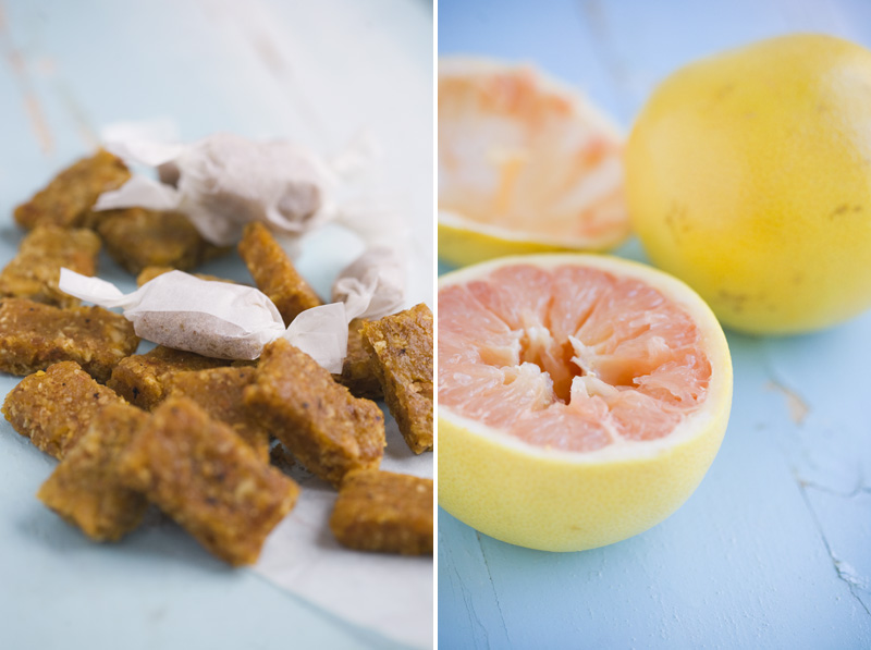 Before we left I prepared these treats. I actually started making them without knowing what I would end up with. My only plan was to pair apricots with grapefruit. And to make something very uncomplicated. Maximum four ingredients. I kind of expected that I would end up with raw apricot bars. But after blending the ingredients together, the consistency felt a bit too loose so I decided to bake them. A while in the oven was exactly what was needed. Out came these golden sticky bite-sized toffee bars. I chose to make them small since I think normal size bars can be a bit too heavy sometimes. These are the perfect size.