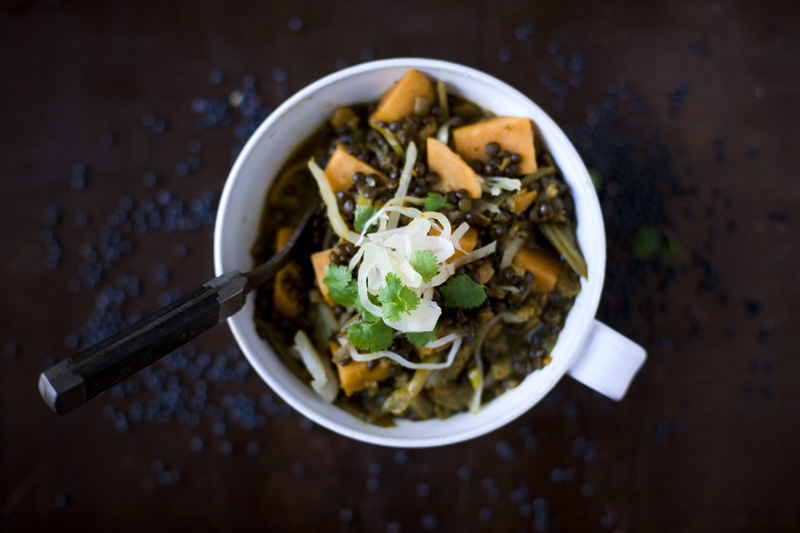 Beluga Lentil, Sweet Potato & Fennel Stew with Sauerkraut