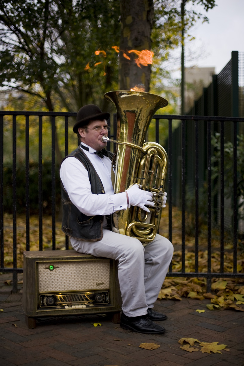 • Elsa had her first crush. On a guy playing a burning tuba at Broadway market. [scroll down for photo]