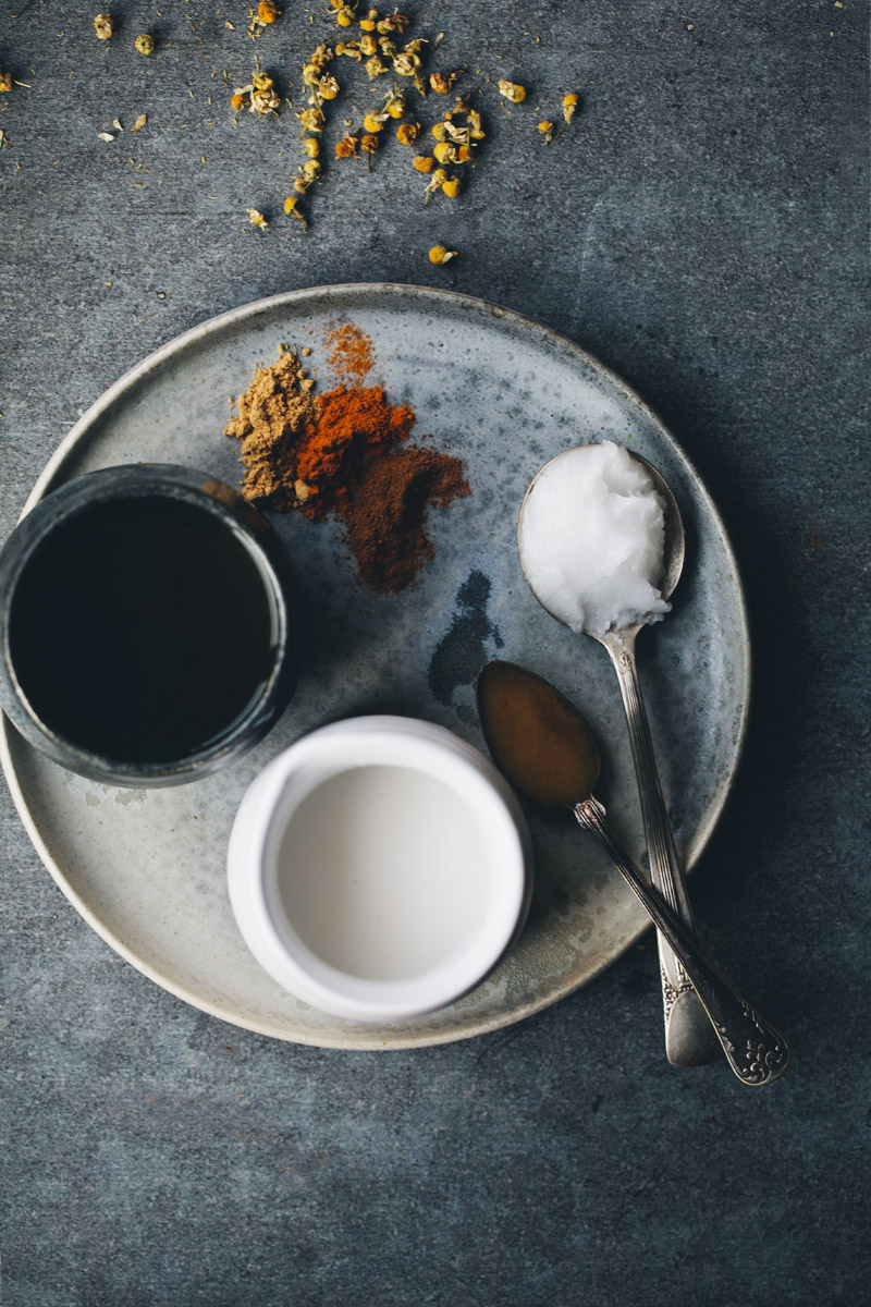 Warm chamomile tea with honey is indeed a good sleep-aid. Chamomile is calming and honey is anti-bacterial. We kept a huge jar New Zealand Manuka with us in the van and it felt like such a luxury. Active Manuka honey is known for its medicinal properties. If you can’t find it or afford it, choose another unheated quality honey. Coconut oil is a true super food with a long list of health benefits, add it to your daily routine and always choose a cold pressed quality oil. It gives tea a round and rich consistency and leaves you more satisfied. It can however feel a little oily and unusual if you are not used to it, so I recommend starting with a little less. Turmeric, ginger and cinnamon add great flavour as well as immune-boosting and anti-inflammatory properties. Try adding a little black pepper, the black pepper helps to enhance the bioavailability of curcumin in turmeric by a thousand times.