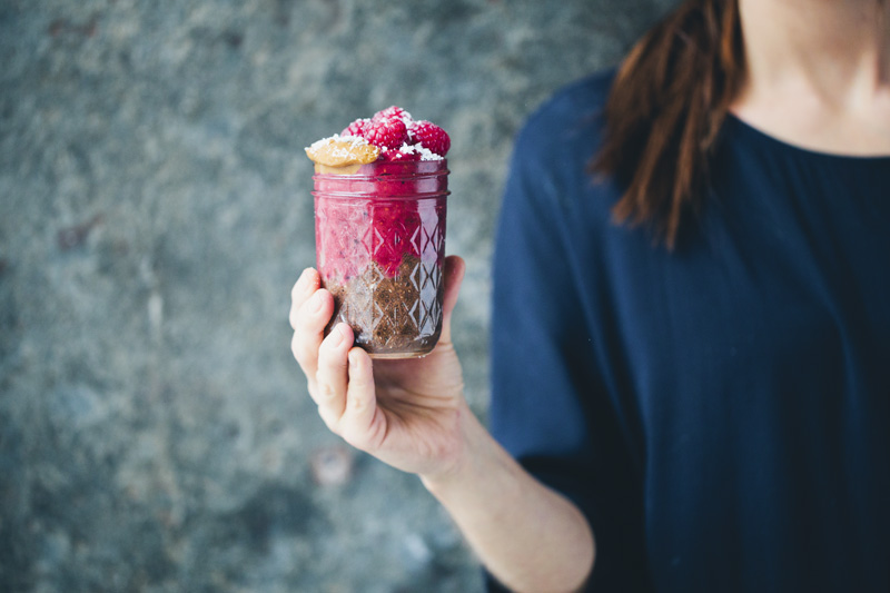 I realize that we have shared a couple of quick parfaits here before but it is quite nice to have a few different desserts to choose between when late night cravings set in. Our Apple Crunch Parfait seems to have become quite popular (not only in our house) and this new parfait is just as good. Easily explained, it’s a chai spiced chocolate chia pudding topped with a lush and creamy raspberry mousse made from only 3 ingredients! It’s one of those happy coincidences when a really simple recipe also turns out to be deliciously addictive. I could eat the mousse with a spoon straight from the food processor (and I do when David isn’t watching) but turning it into a parfait feels a little classier. This is usually served a sweet snack or simple dessert in our family but I guess it could be a pretty awesome breakfast as well.