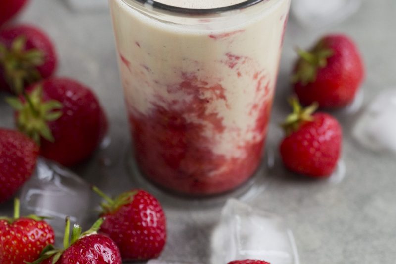 Up here in northern Europe we actually have a couple of bright and sunny months (even though we spend most of the year in total darkness). And when that first sun comes out everything stops. We start behaving like statues, standing in the street corners, gazing at the sun. And we start to eat lunch and dinner outside even though it’s actually freezing cold. And we wear sunglasses everywhere. And we buy ice-cream, smoothies and shakes and pretend that it’s summer, even though it’s only April. As you might understand that first sun has just appeared. And we love it! So we rushed into the kitchen to make us a summer shake.