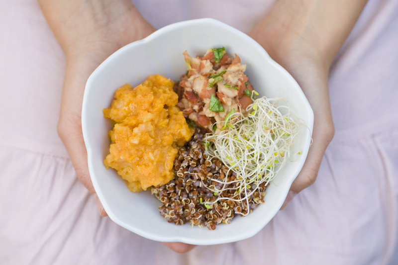 The easiest way is to cook a lot of everything one or two days a week, store it in big jars that you keep in the fridge or freezer (use ice cube molds), and when it’s time for dinner all you need to do is to take a spoonful from each jar or an ‘ice cube’, heat and serve! Don’t be afraid to use mild spices and fresh herbs, babies loves that too.