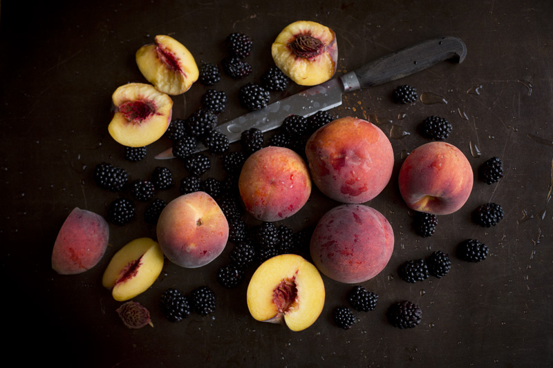 1/4 of a large glass jar of mixed organic ripe fruit (we used fresh peaches and blackberries)