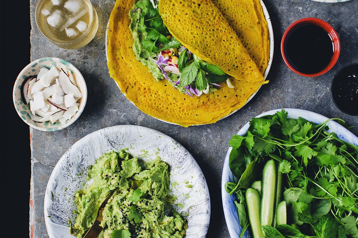 You can use almost any veggies in pancake rolls. Just make sure you have something creamy and sticky as base to bind them together. For a vegan version, use hummus instead of yogurt and tofu instead of feta cheese and sprinkle with nutritional yeast.Next time, we’ll add some crushed walnuts for crunch, pomegranate seeds for extra tanginess and maybe a couple of mint leaves for a fresh flavor twist.