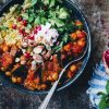 I posted a photo of thinly sliced spuds on instagram a while back, mentioning that we would roast them, add kale, beans, red onion and cherry tomatoes, slather with pesto and call it dinner. The response was unusually loud for such a humble dinner that we decided to recreate and share this simple recipe here.