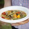 Last night we finished our dinner with this classic Italian dessert, a macerated fruit salad with our own version of a honey zabaglione. The Italians vary the fruits according to season, we used different stone fruits and Cantaloupe melon. What makes the Italian fruit salad special is that it’s tossed with lemon juice and sugar (we used honey) and left it in the fridge for a couple of hours to let the juices and flavors come out.
