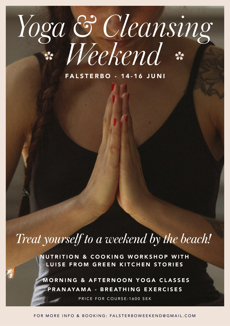 I will be teaching a Nutrition & Cooking Workshop this summer as a part of a Yoga & Cleansing Weekend in Falsterbo, southern Sweden. The workshop will take place in a beautiful yoga studio in a villa near the beach and close to accommodation and cafés. See the flyer for more info and send an email for the full program and booking details. Hope to see you there!