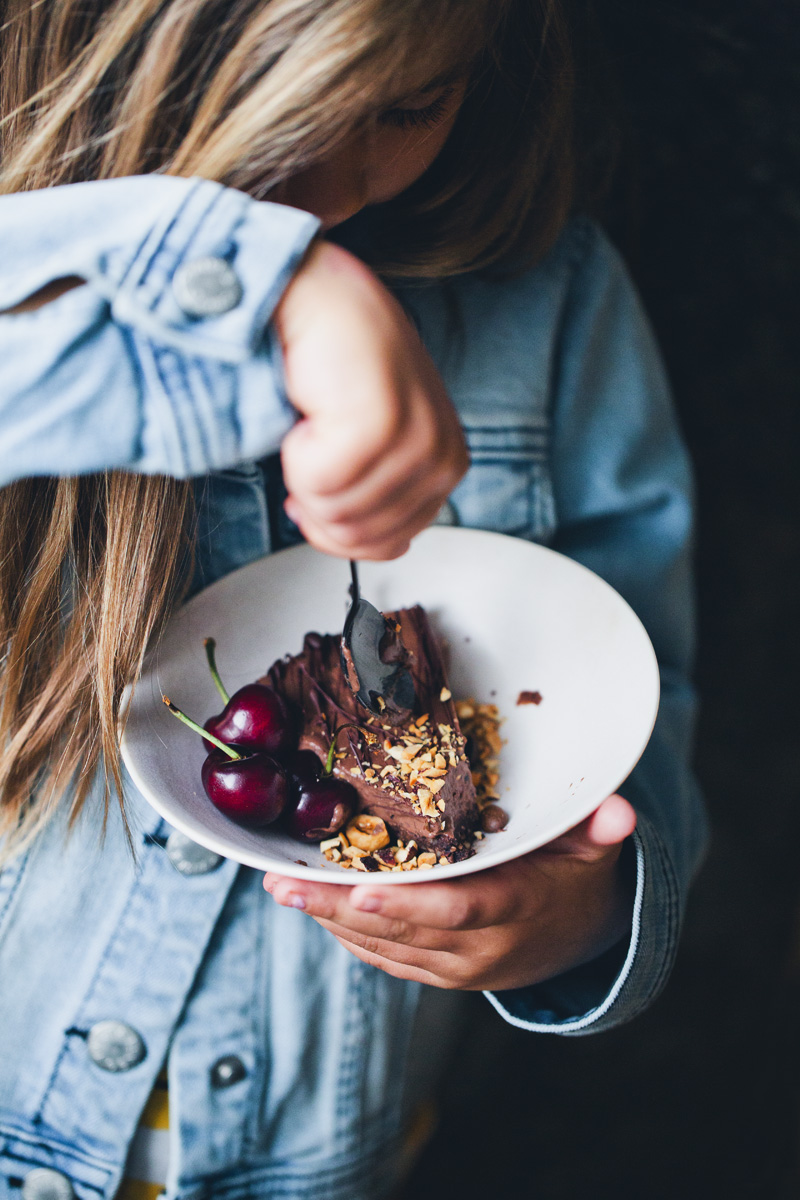 Come to think of it, this must be one of the easiest cakes in our repertoire. It’s entirely vegan and gluten free, the ingredient list is conveniently short and you can throw everything together in more or less 15 minutes. Although it needs about two hours in the freezer before it can be devoured.
