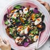 I've made flatbread with regular flour many times before, using cultured buttermilk or yogurt as the liquid. It is arguably the easiest bread you can make since you don't use an oven, only need two main ingredients (flour and liquid) and there is no proofing time. However, when I got home I realized that we didn't have any bread flour (and Luise asked me to do a gluten-free flatbread) so I gave it a try with oat flour (which we make by mixing rolled oats finely). And it worked really well! They hold together, can be flipped easily and the oats add a sweet nuttiness to them so they don't need any additional sugar. I used Turkish yogurt both in the dough and as topping. If you haven't tried Turkish yogurt on top of bread you need to give it a go – it adds that perfect combination fat + fresh. We sprinkled it with za'atar, covered it in thinly sliced tomatoes and made a riff on our Magic Green Sauce that we drizzled on top. The result will make you wonder why you are working so hard on keeping your sourdough starter alive. ;)