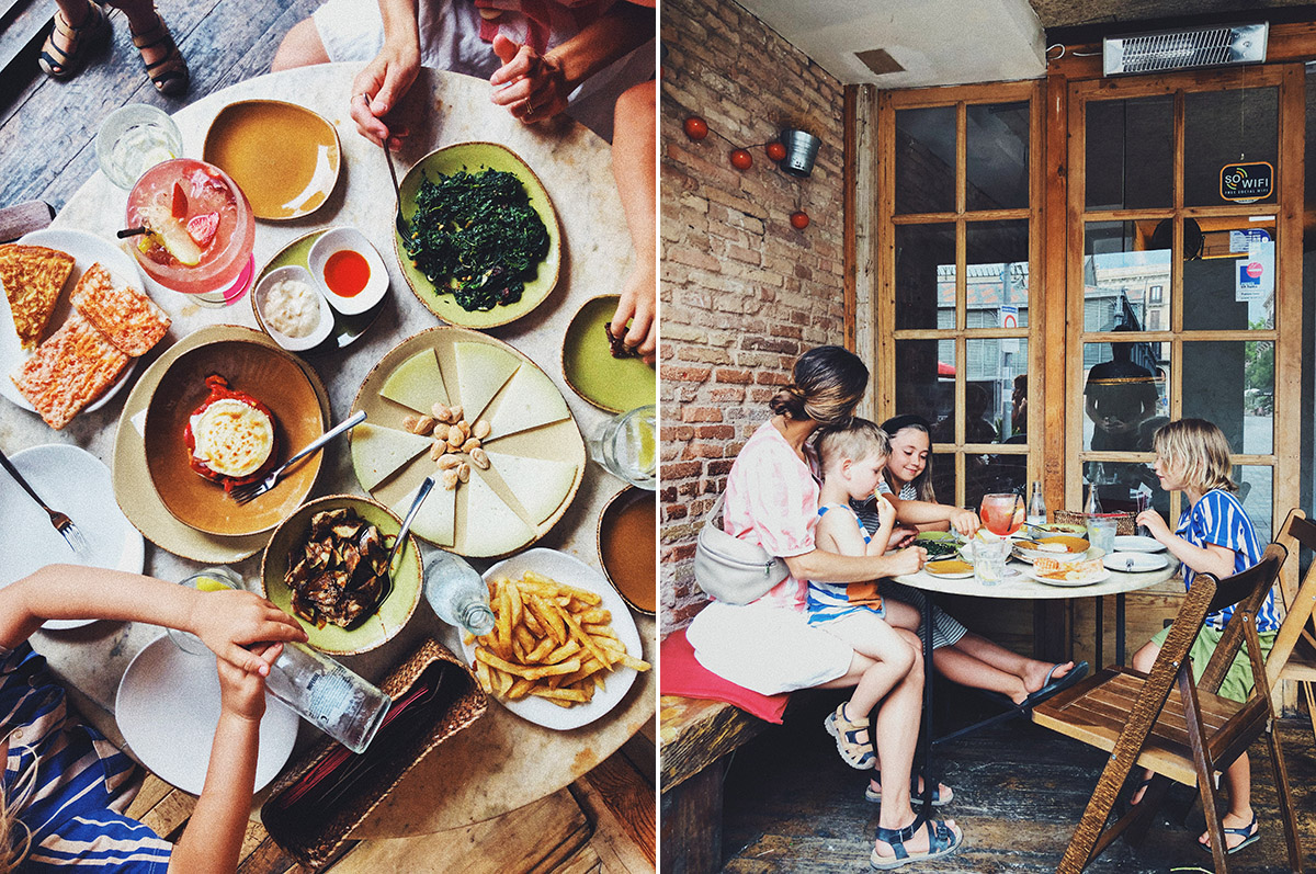 – The Green Spot – A fancier vegetarian restaurant right in the beginning of Barceloneta. We have tried their charcoal pizza with zucchini and smoked burrata, root carpaccio with spirulina and iced turmeric latte with espresso.
