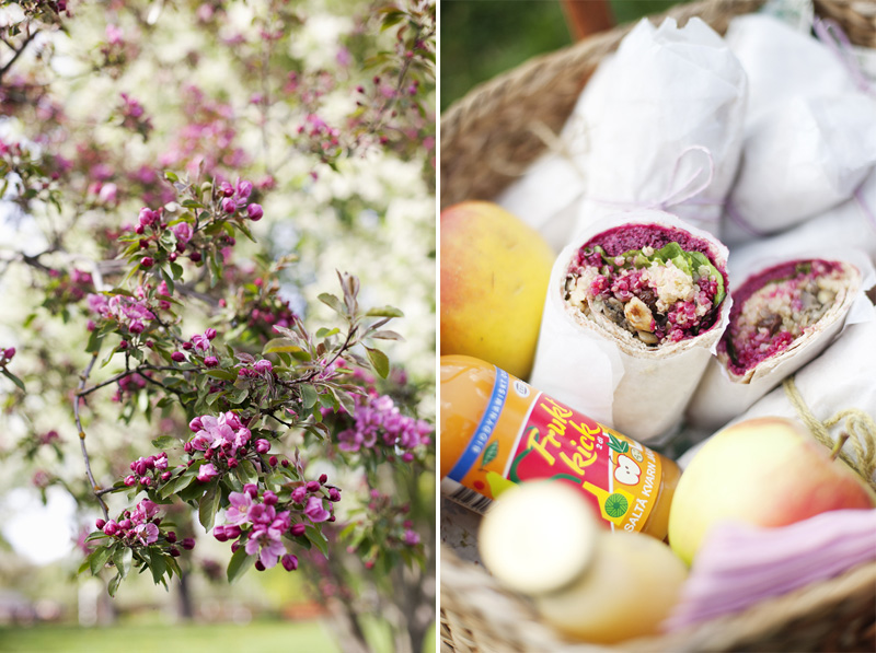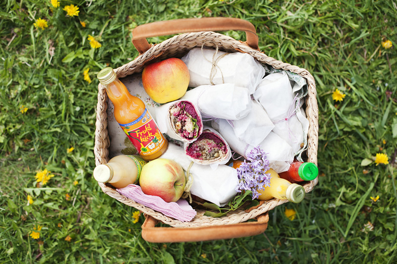 I am not going to give you a big speech about wraps. It’s pretty obvious that they are good picnic food since they are extremely portable and taste good cold. The fun thing is that you can vary them endlessly depending on what you fill them with. Luise came up with three different fillings for our wraps; a creamy beetroot & goat cheese filling, a crunchy green lentils and walnut filling and a sweet quinoa and raisin filling. Creamy, crunchy and sweet – isn’t she phenomenal?!