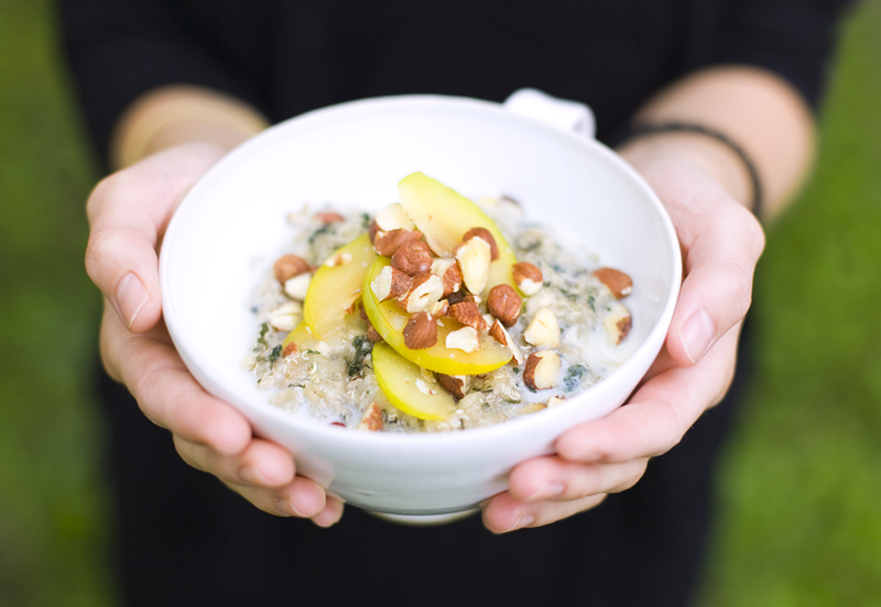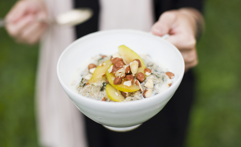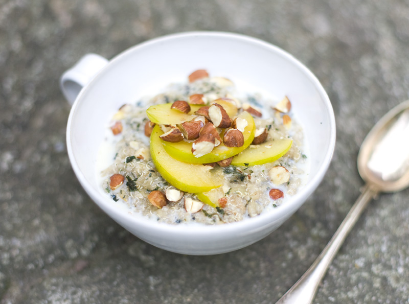 August turned out to be a healthy month for me, focusing on body and mind and on getting back in balance after the pregnancy. I went to see a Homeopathic doctor, and even though some people judge it as hippie nonsense I have had major results! And talking about hippies, we have to tell you about our new morning obsession – this super nutritious quinoa porridge with nettles. It’s packed with vitamins, minerals, iron and proteins, and it’s gluten free! It is quick to make and you can easily adjust it to whatever you have at home. We know that it is a little bit late for the nettle season but I found this big bag of dried stinging nettles while I was in Denmark, so now we can try nettle recipes all year round. And no, they don’t burn your mouth …