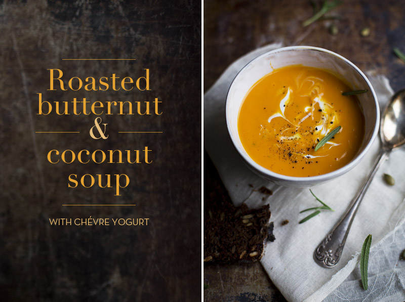 Roasted Butternut & Coconut Soup with Chévre Yogurt
