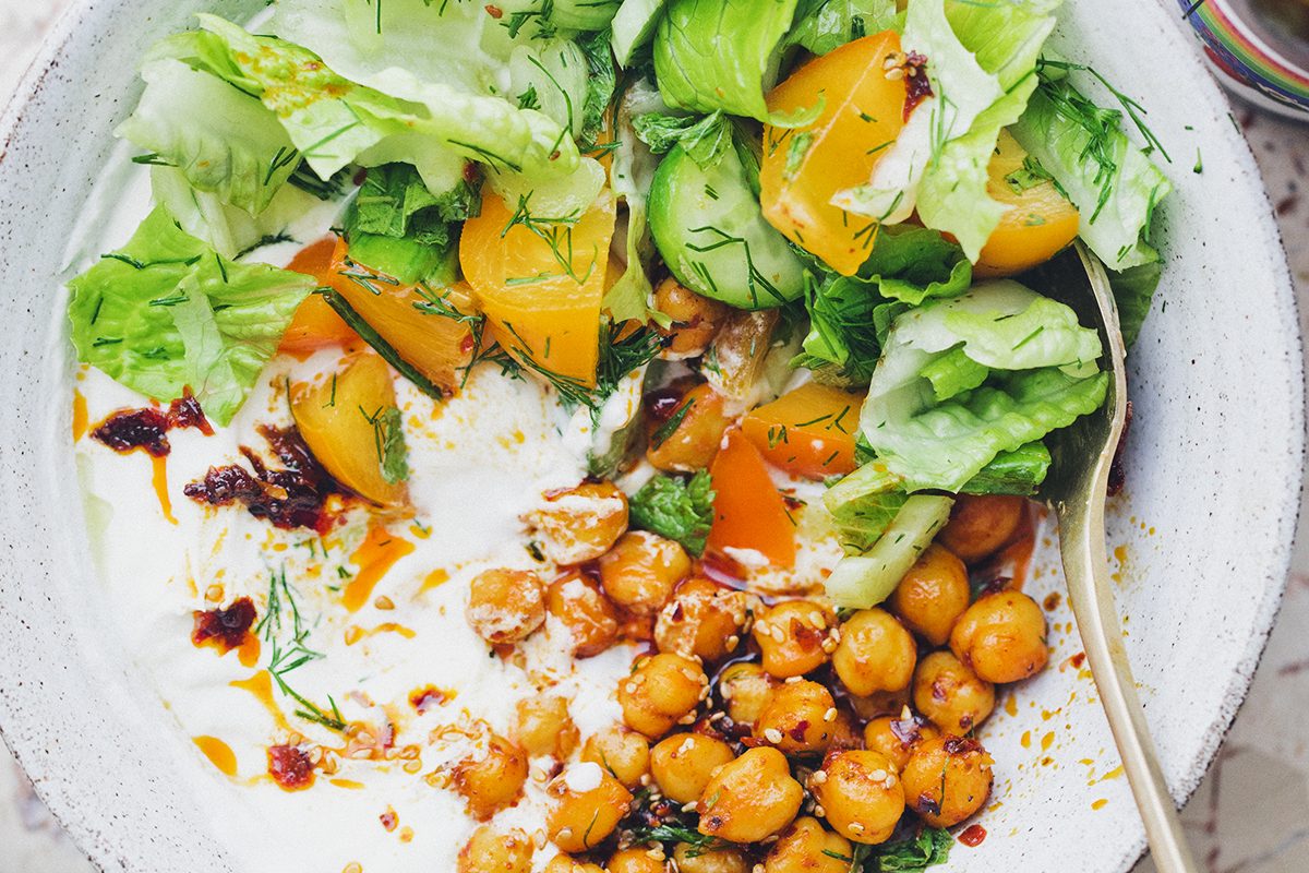 As much as I love porridge bowls, banana pancakes, baked carrot cake oatmeal and rye bread sandwiches, croissants play in a breakfast league of their own – they are so buttery, flaky, crunchy and the fact that it takes hours and hours to make them also makes it feel more special eating them. We have a few good bakeries near where we live so we haven't baked our own croissants for years (we do a have a pretty epic rye croissant in our Green Kitchen Travels book). When we bring the kids they always beg for chocolate filled croissants but on the occasions when we have natural croissants at home, adding a savory filling to them is the best breakfast/brunch hack. They look super luxurious and taste so rich and satisfying. We fill them with creamy eggs, tangy labneh and lots of greens, inspired by egg-croissants we have had at cafes in Australia, Capetown and L.A. But just filling them with a slice of cheese and greens is also good. It's also the perfect thing to make if you have one or two day-old croissants at home.