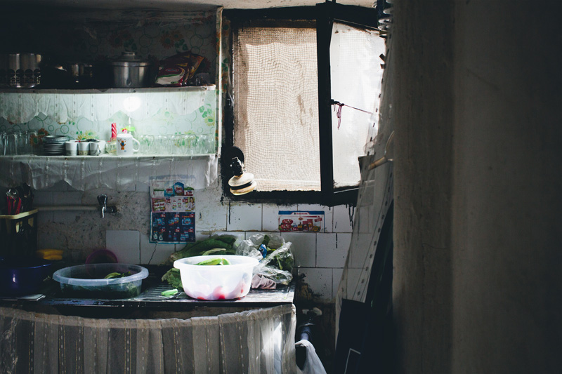 (2/5) “Back in Aleppo, we renovated our kitchen entirely when we got married. It looked very nice. It was a big, bright kitchen with a large marble countertop. The kitchen was the colour of cappuccino and some of the cabinets had glass doors. I used to place some of my finest colourful vases and glasses there, so you could see them through the glass.”