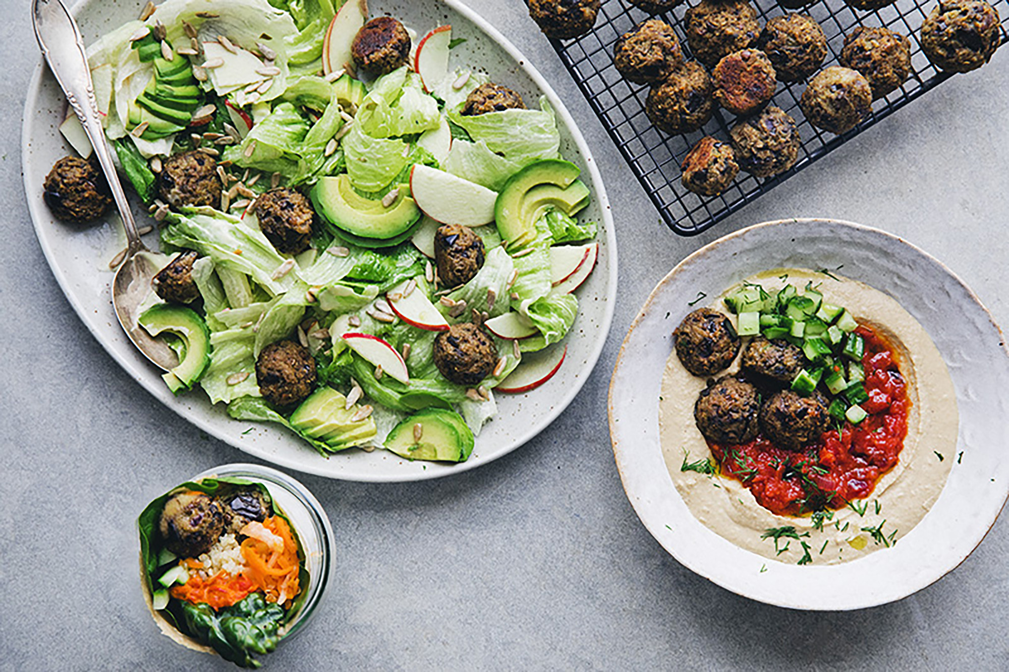 We really love this series because it reflects so much how we actually eat. It’s not always an entirely new meal every day but more of a flow where the same components are repeated with new pairings. These polpette or vegan meatballs are perfect for this. They are good on their own – tender and very flavorful. And they are also insanely versatile, rolled into a wrap, tangled into pasta, paired with a spicy tomato sauce and hummus or tossed in a crunchy vegan take on a caesar salad.