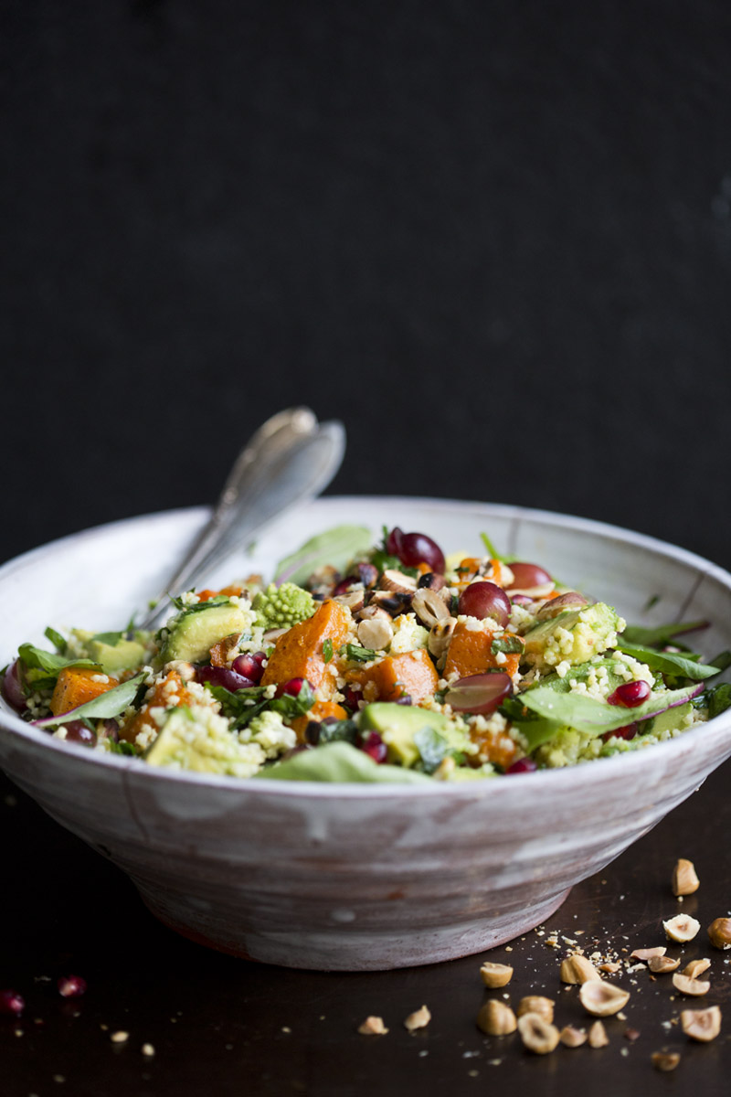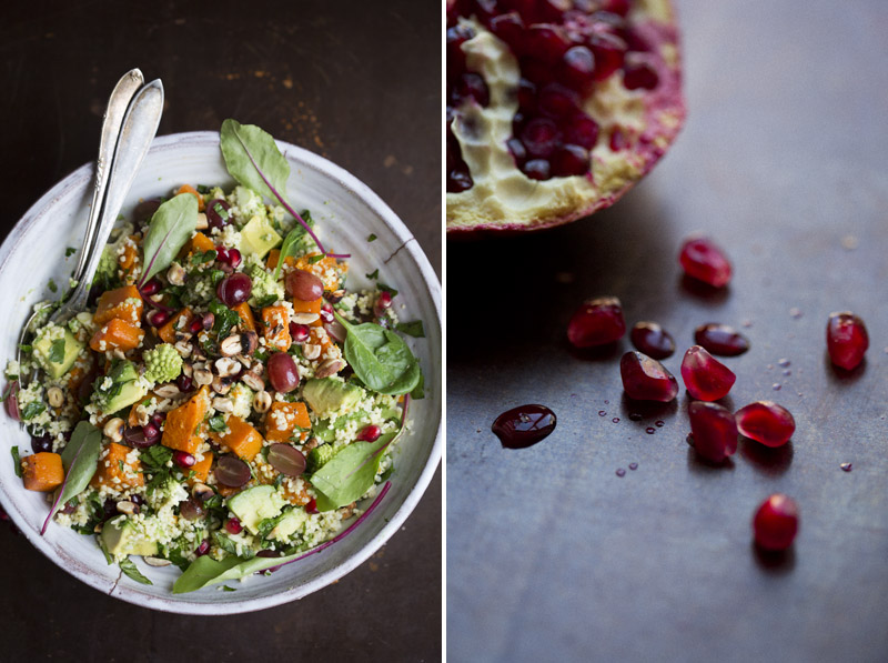 • This looks fantastic. Ironically, I made something frighteningly similar today with quinoa, kale, butternut squash, hazelnuts, and pomegranate seeds so I know how good it must taste.